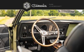 Dieses Exemplar – ein echter Klassiker in grün metallic – stammt aus jener Ära, in der der Grundsatz „viel hilft viel“ zum Motorenkonzept erhoben wurde. Der verbaute 6,6-Liter-V8 mit seinen 330 PS ist dabei nicht nur eine Zahl im Fahrzeugschein, sondern ein Erlebnis, das man sieht, hört – und fühlt. Die Kraftentfaltung ist typisch amerikanisch: souverän, satt, kompromisslos.