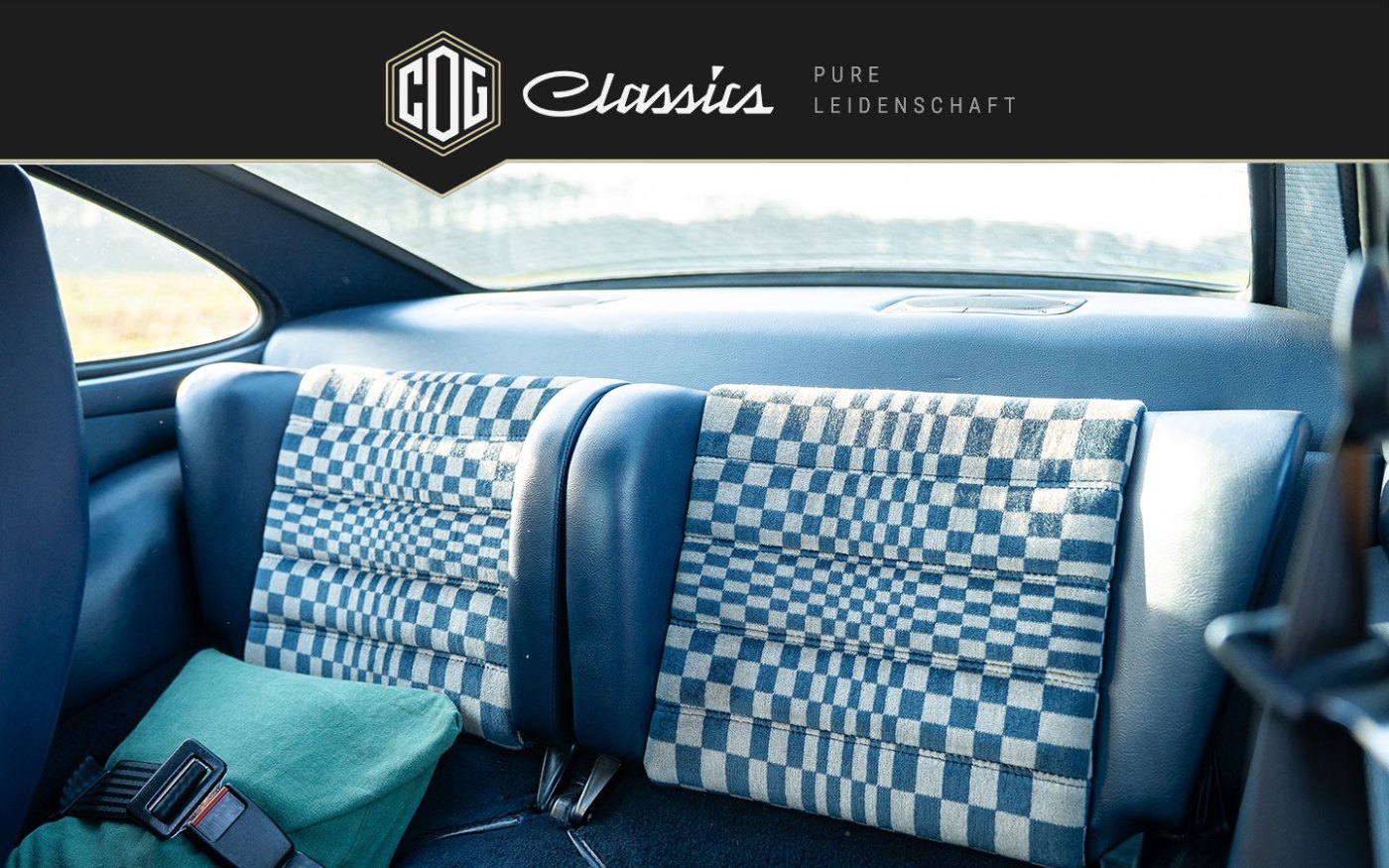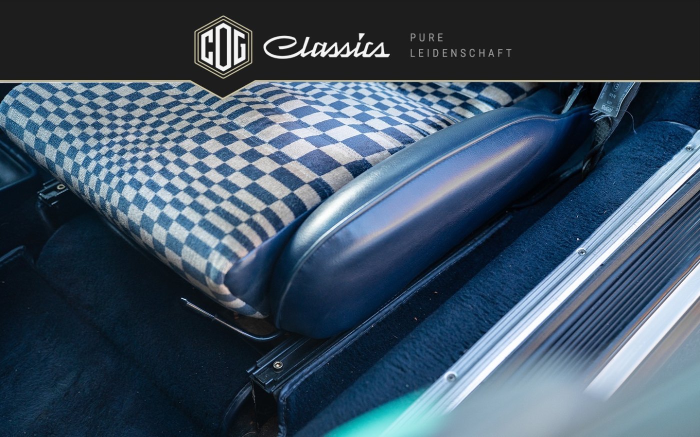 Ausgeliefert wurde das Coupé in der sehr seltenen und äußerst attraktiven Farbkombination Grandprix-Weiß mit Pascha-Teilleder in Blau. Diese Kombination ist nicht nur zeittypisch, sondern heutzutage kaum noch zu finden und verleiht dem Fahrzeug eine ganz besondere und authentische Ausstrahlung.